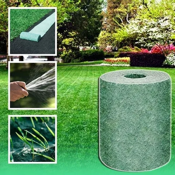 - BIODEGRADABLE GRASS SEED MAT – Can be folded again, the product itself without seeds is a degradable fabric; The role is to prevent seeds from being washed away by water; Heat preservation; Moisturizing; Shading; Play a full role in seedling. Biodegradable Fabric prevents seeds from washing away making it cheaper, easier, and lighter than traditional sod.